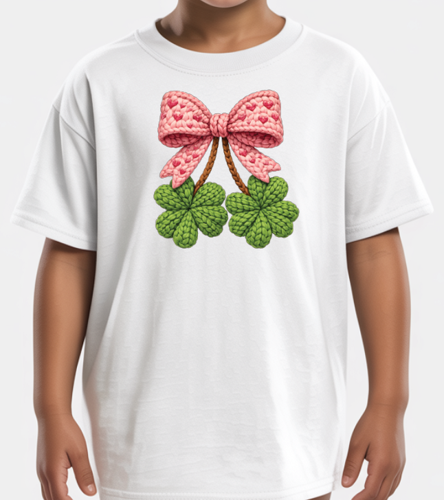 "Pink Bow-4 Leaf Clover" St. Patrick's Day Shirt